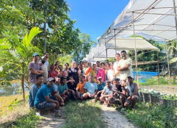 Arriving at Neelam's farm was almost like stepping into paradise. Small fish ponds, lush rice fields, a variety of fresh fruits like bananas, papayas, and many more, as well as a multitude of vegetable seedlings, enchanted us. Clean pathways, well-maintained fields, and cheerful workers in colorful garments created a peaceful and creative atmosphere.