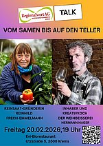 „Wer nichts weiß, muss alles essen!“ – Unwissenheit führt zu schlechten Entscheidungen auf dem Teller. Doch echte Qualität beginnt beim Samen! Erfahre beim Regionalwert Talk mit ReinSaat-Gründerin Reinhild Frech-Emmelmann & Kreativkoch Hermann Hager, was samenfestes Saatgut ausmacht – inkl. Verkostung & Wissen, das deine Sinne schärft.