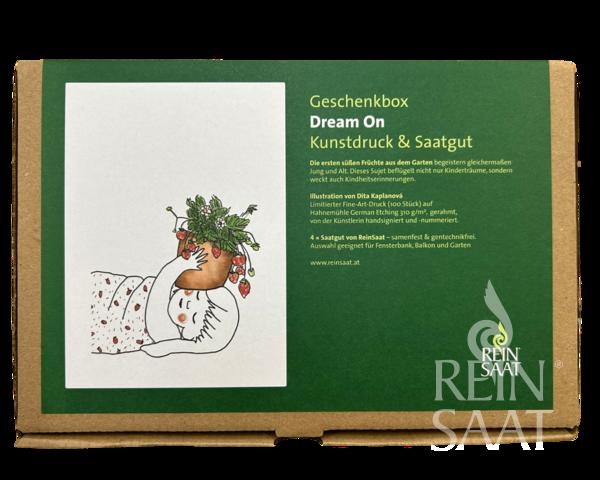Illustration der Künstlerin Mag.art. Dita Kaplanova handsigniert und –nummeriert. Limitierter Fine-art Druck (100 Stück) auf Hahnemühle German Etching 310g/m² Künstlerpapier. Das gerahmte Bild gibt es mit vier ReinSaat-Samentüten für die jede*r Gärtner*in Platz im Garten findet - liebevoll verpackt mit einer ReinSaat Postkarte.