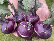 Raschwüchsige, sehr homogene Marktgärtnersorte für die gesamte Freilandsaison. Bildet flachrunde, zarte, attraktiv blauviolett gefärbte Knollen mit aufrecht stehendem, mittellangem Laub. Rocco überzeugt durch hervorragende Aromatik, gute Frostbeständigkeit und Schossfestigkeit.