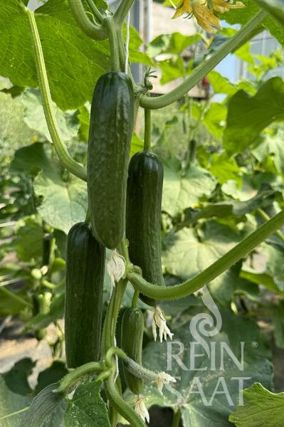 Raschwüchsige, parthenokarpe Midi-Gurke für den professionellen Anbau. Liefert Höchsterträge an glatten, dunkelgrünen, ca. 20 cm langen Früchten mit knackigem, wohlschmeckendem und absolut bitterfreiem Fruchtfleisch.