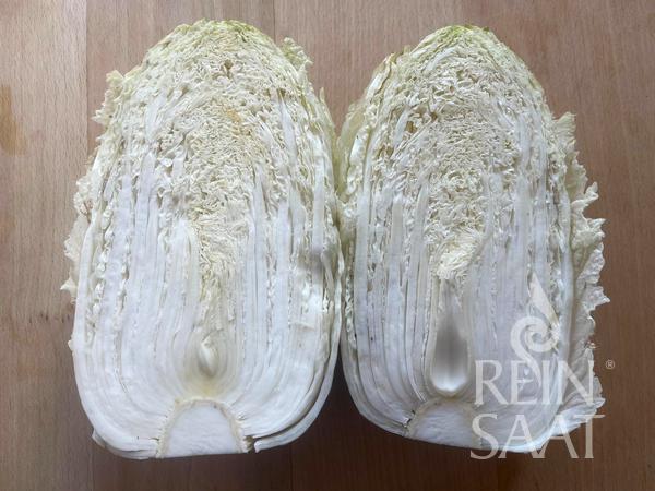 ReinSaat breeding. Compact, late ripening Chinese cabbage variety for autumn cultivation with very good bolt resistance. Forms oval approx. 25–30 cm long heads weighing 1–2 kg. Nice dark green, strongly curled leaves with a very good taste. Development time approx. 90 days.
