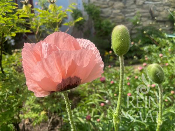 Oriental poppy delights with its cup-shaped, hand-sized, single flowers in soft salmon to antique pink shades, featuring a strikingly dark centre. From May to June, it adds impressive highlights to any garden. This herbaceous to bushy-growing, winter-hardy perennial reaches a height of up to 100 cm. After flowering, it dies back in summer and surprises again the following spring with its magnificent appearance.