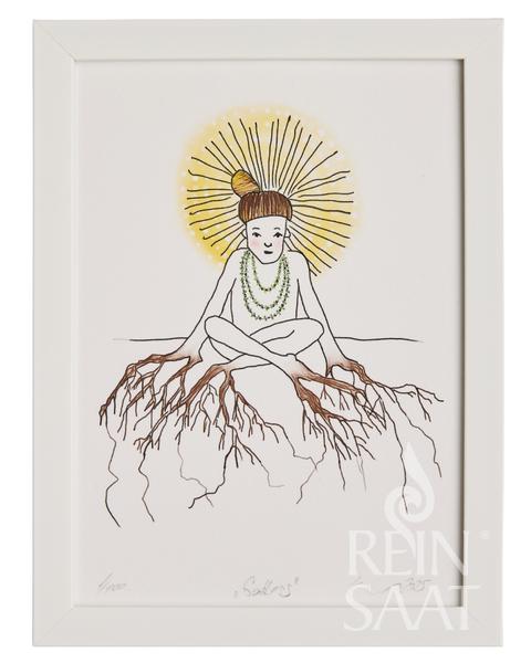 Illustration der Künstlerin Mag.art. Dita Kaplanova handsigniert und –nummeriert. Limitierter Fine-art Druck (50 Stück) auf Hahnemühle German Etching 310g/m² Künstlerpapier. Das gerahmte Bild gibt es mit vier ReinSaat-Überraschungstüten* für Balkon und Garten in einer Geschenksverpackung mit ReinSaat Postkarte.